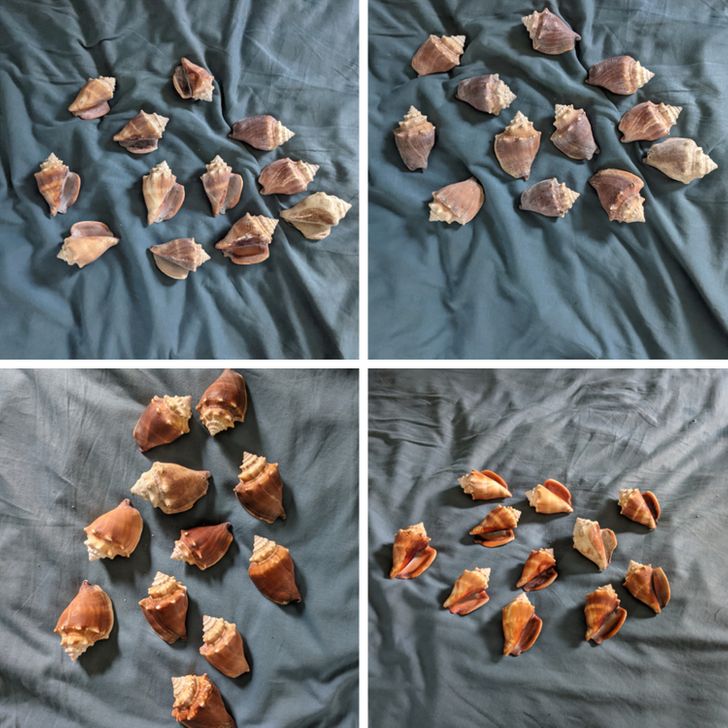 „Mielőtt és miután megtisztítottam néhány kagylót, ami körülöttem hevert”