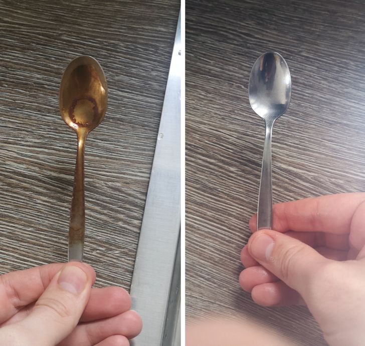 „Egy századközépkori ezüst koktélkeverőt fényesítettem. Annyira fényes, hogy az „utána” fotóhoz nadrágot kellett felvennem.”