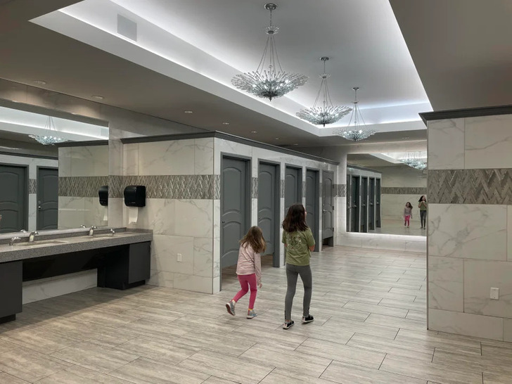 22. „Kamionparkolói mosdó, ami úgy néz ki, mintha egy puccos szállodába való lenne”