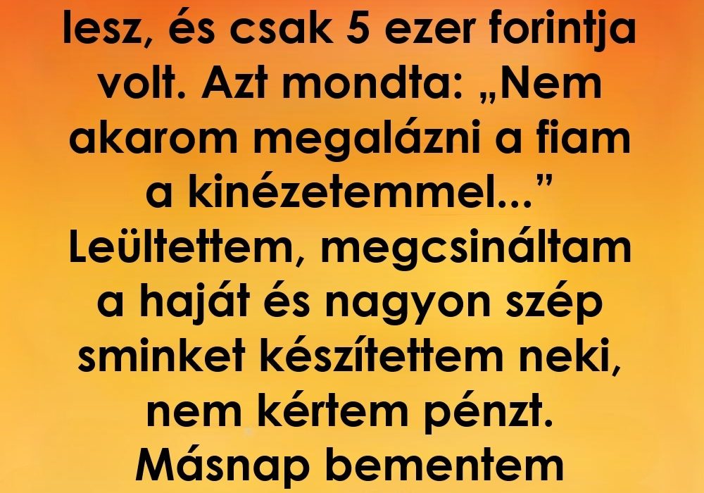 A fia esküvőjének reggelén egy asszony jött be hozzám, könnyes szemmel, és egy kopott pénztárcában mindössze 5 ezer forinttal.