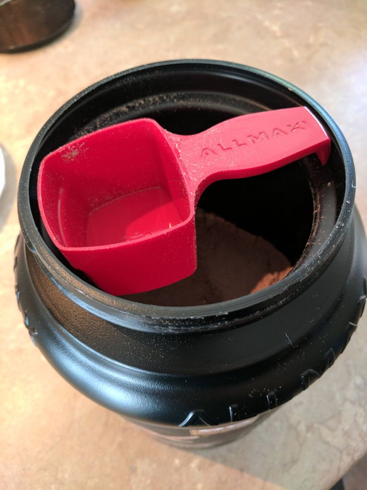 A mérőkanál mérete tökéletes, így nem tud beleesni a fehérjébe.
