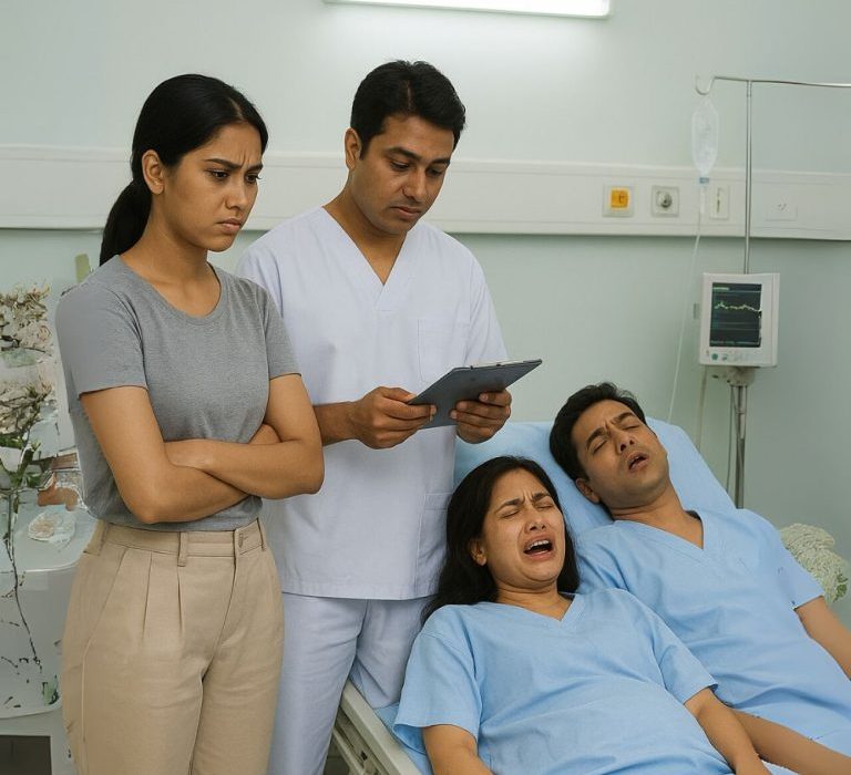 Amit a kórházban láttam, megrázott. János az ágyon feküdt, verejtékezett, arca falfehér volt. Mellette egy fiatal lány, akit soha nem láttam, ugyanúgy rosszul volt, levegő után kapkodott.