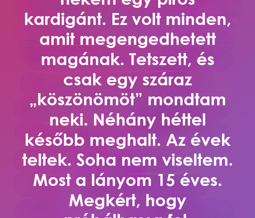 A lányom óvatosan magára vette a kardigánt. Úgy mozdult, mintha valamit érzett volna, amit én akkor még nem tudtam. Átölelte magát, aztán engem, és halkan azt mondta, meleg. Elakadt a hangom, és megjöttek a könnyek. Nem csak a bánat miatt, hanem a hála miatt is.