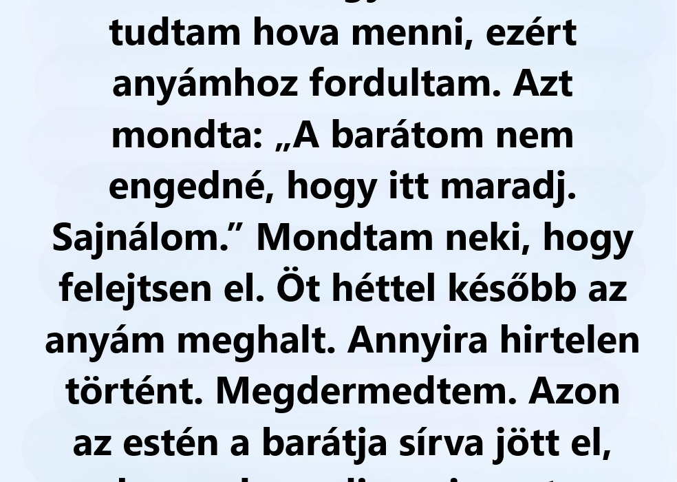 „A barátom…” mondta halkan, és erősebben fogta az ajtó szélét. „Nem engedi. Sajnálom.”