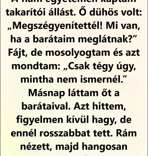 Marissa vagyok, negyvenkilenc éves. A múlt hónapban kezdtem dolgozni takarítóként azon az egyetemen, ahol a fiam, Logan másodéves. A legtöbb évben egyedül neveltem.