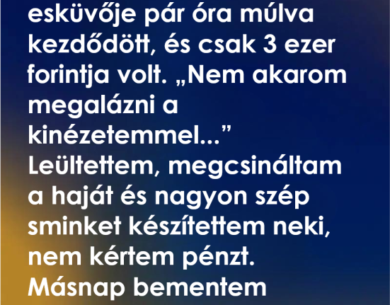 Egy nő könnyekkel a szemében érkezett a szépségszalonomba. A fia esküvője pár óra múlva kezdődött, és csak 3000 forint volt nála. Halkan azt
