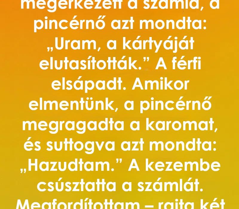 A pincérnő utolért, finoman megérintette a karom, és halkan a fülembe súgta: „Hazudtam.”