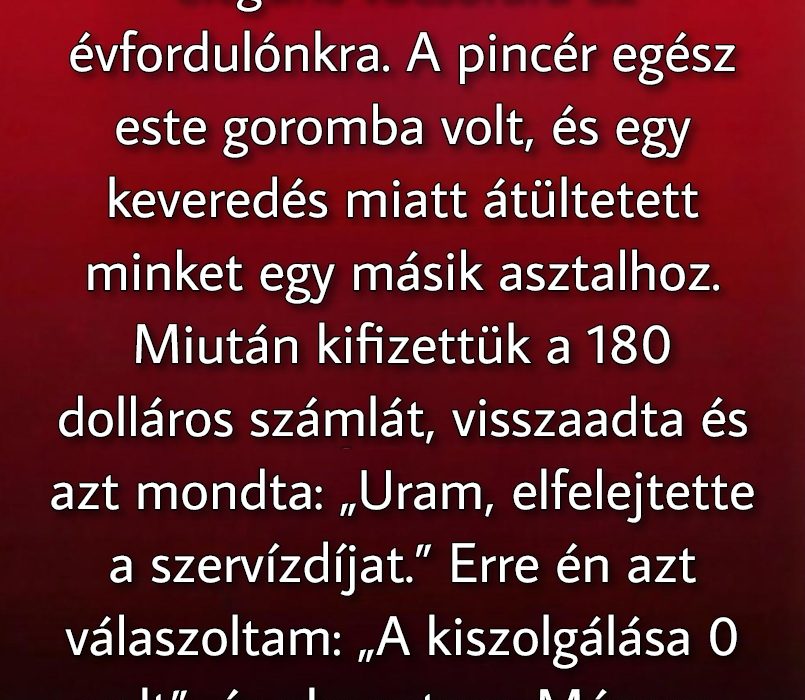 Az a vacsora nem úgy alakult, ahogy terveztem. Mégis adott valamit, ami többet ér egy tökéletes estének tűnő programnál. Emlékeztetett rá, hogy a méltósághoz nem kell balhé, csak őszinteség, és hogy a tisztelet elvesztése sokkal többe kerül, mint bármilyen számla.
