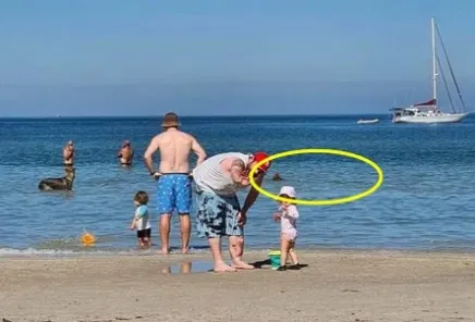 Egy Melbourne-ben élő család felvétele kavart nagy port, miután furcsa alak bukkant fel a háttérben. A képet a Carrum Beachen készítették, ahol egy apuka és kislánya vidáman integet a kamerának. Ők nem vettek észre semmit a mögöttük lévő vízben.