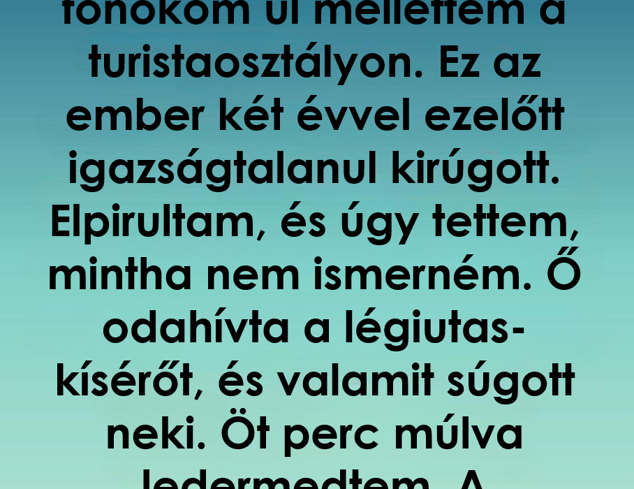 Felismert. Odahajolt a légiutaskísérőhöz, mondott valamit, amit nem hallottam. Pár perc múlva a kísérő visszatért egy udvarias mosollyal. „Uram, áthelyeztük első osztályra.” Pislogtam, nem értettem, majd ránéztem. Bólintott, feszült, félig bocsánatkérő biccentés volt. Elindultam előre, a pulzusom a fülemben dobolt, nem tudtam, bűntudat mozgatja, vagy együttérzés.