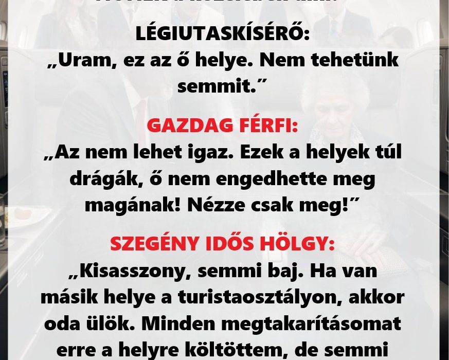 „Kisasszony, semmi baj. Ha van egy szabad hely az economy osztályon, átülök oda. Minden megtakarításomat erre a helyre költöttem, de nem akarok terhére lenni senkinek.”