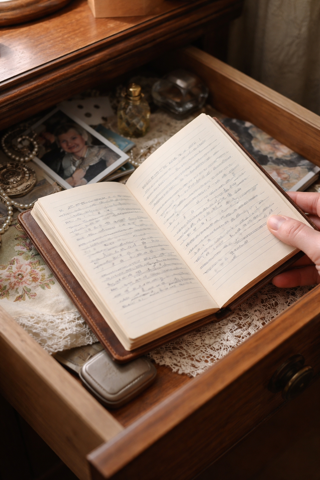 Hónapokkal később, amikor átnéztem anyukám holmiját, találtam egy vékony füzetet a fiók mélyén. Korábban sosem láttam. A kézírás nem az övé volt.