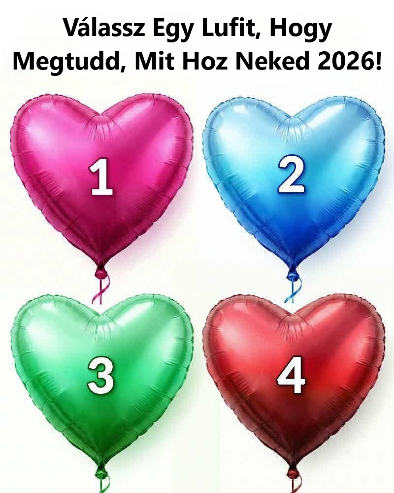 Elsőre ez az egész csak egy kedves, vidám képnek tűnik: négy szív alakú lufi, négy különböző színben, mindegyiken egy szám 1-től 4-ig. Fent egy egyszerű felhívás áll: „Válassz egy lufit, és nézd meg, mit hoz 2026.” Könnyed, játékos, mégis rátapint arra, ahogyan a legtöbben a jövőre gondolunk.
